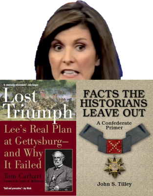 Coming just a few days after Trump’s proclaimed ignorance of all things Hitler — Nikki Haley overlooks the cause of the Civil War. DeSantis makes a cameo appearance here as well, but he’s not worth wasting the alphabet on.