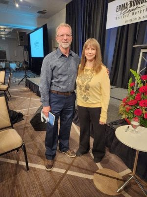 This is the one that was posted on the Bombeck site. I’m going to the writing workshop again this year, in April (I first attended in October 2022), and very much looking forward to it. In 2022 I got my picture taken with conference speaker — and original SNL cast member — Laraine Newman!