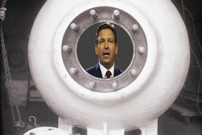 OK, I *did* waste a bit more of the alphabet on DeSantis — but only to send him on his way. Just in case the graphic isn’t clear to you — it’s a bathysphere, suggesting he’ll descend to someplace very dark and quite deep.
